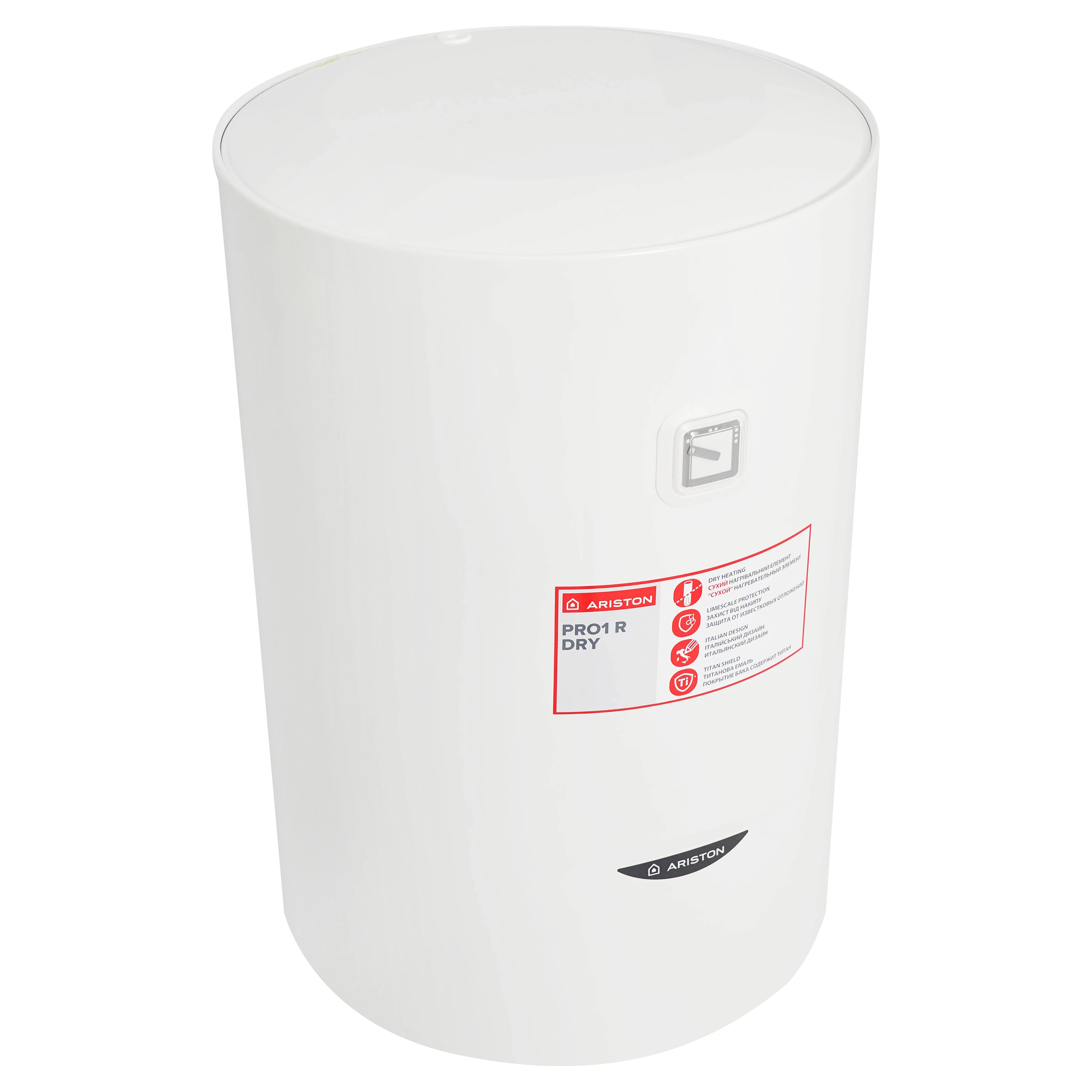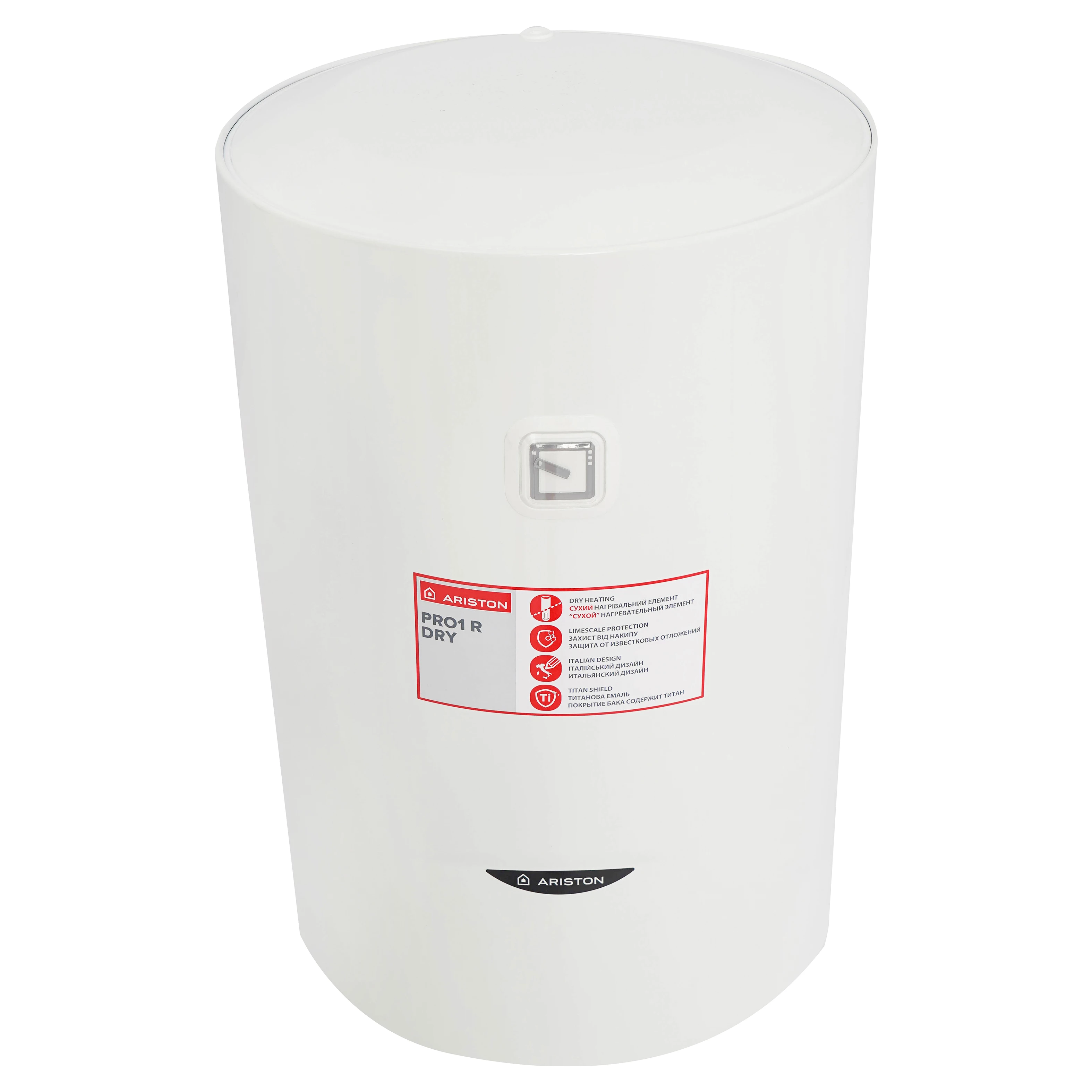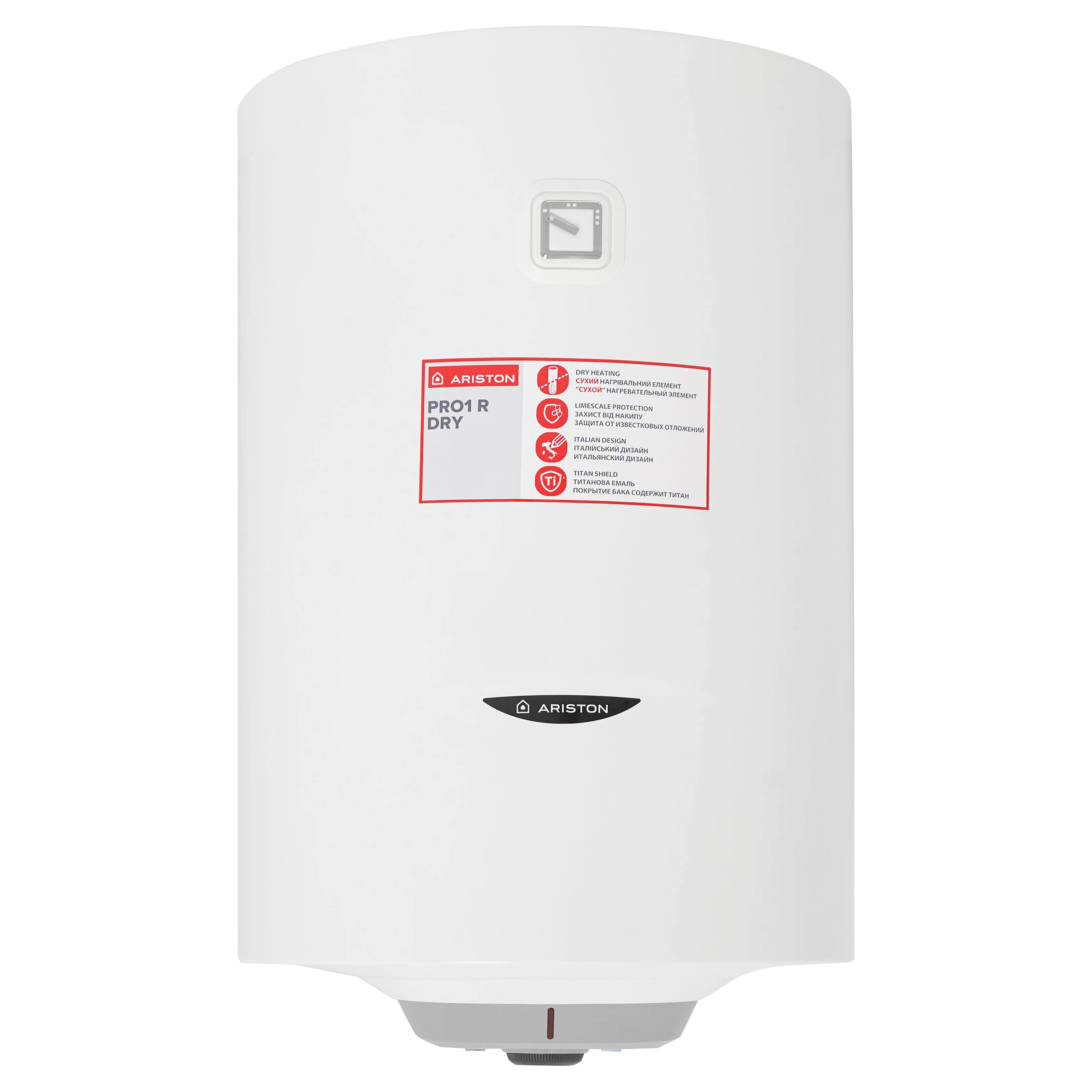 Водонагрівач PRO1 R DRY 80 л — настінний водогрійний електроприлад з сухим теном та механічним регулюванням температури від італійського бренду. Запатентована інноваційна технологія WaterPlus утримує холодну воду, яка надходить, на дні бака, що запобігає її змішуванню з гарячою водою (тою, що зберігається в ємності). Це дає змогу отримати на 16% більше гарячої води для насолоди справді гарячим душем у будь-який час. Водонагрівач має зовнішній механічний терморегулятор, який встановлений на корпусі.