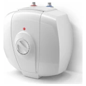 HI-THERM ELECT 15 U Компактний електричний водонагрівач монтується ПІД раковиною завдяки своїм маленьким розмірам, має виходи ЗГОРИ. Водонагрівач має зручний механічний терморегулятор, міцний сталевий бак з покриттям з дрібнодисперсної емалі, яка запобігає протіканню. Технічні дані Об `єм 15 л Потужність 1500 Вт Час нагріву 31 хв Габарити 384х372х337 мм Тип тена мокрий Вага 7,8 кг Головні переваги водонагрівачів ELECT: Терморегулятор на лицьовій частині водонагрівача з індикатором Капілярний термостат для точного регулювання температури Міцний зовнішній корпус з поліпропілену ON / OFF вимикач