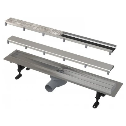 Галузь застосування: Для використання всередині приміщень Для водовідведення в душових на рівні підлоги Може розташовуватися в просторі або безпосередньо біля стіни Для безбар'єрного доступу Характеристики: Водовідвідний жолоб з нержавіючої сталі (обробленої методом травлення і пасивації, а також пройшла електрохімічну полірування) Ухил внутрішній частині жолоби Регульовані монтажні ніжки, дозволяють швидко і зручно встановити жолоб і вирівняти його в горизонтальній площині Підвищена стійкість до хімічних засобів Лоток захищений полістирольних ущільненням Комбінований гідрозатвор забезпечує надійний захист від проникнення запаху з каналізації і після випаровування води в сифоні. Зливні трапи з одного фрагмента стали Решітка є частиною комплекту Самоклеючі стрічки для якісної гідроізоляції Матеріал жолоба: нержавіюча сталь 1,5 мм, AISI 304, DIN 1.4301 комбінований гідрозатвор Швидкість стоку води 50 л / хв. Діаметр зливної труби 50 мм Мінімальна товщина бетону 81 мм Загальна висота монтажу (H2) 96 - 150 мм