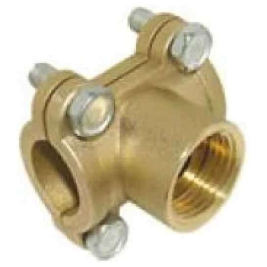 Хомут/врізка в блістері 1/2"x1/2"В PROFACTOR — латунний фітинг для облаштування врізок у системах водопостачання. Частини деталі кріпляться між собою чотирма болтами із шайбами та гайками. Влаштована така врізка за принципом бандажу. Між трубою і пластиною з відведенням встановлюється гума ущільнювача, після чого болтами стягуються обидві пластини, а завершальним кроком є свердління труби через водовідвід для того, щоб відкрити доступ для води.