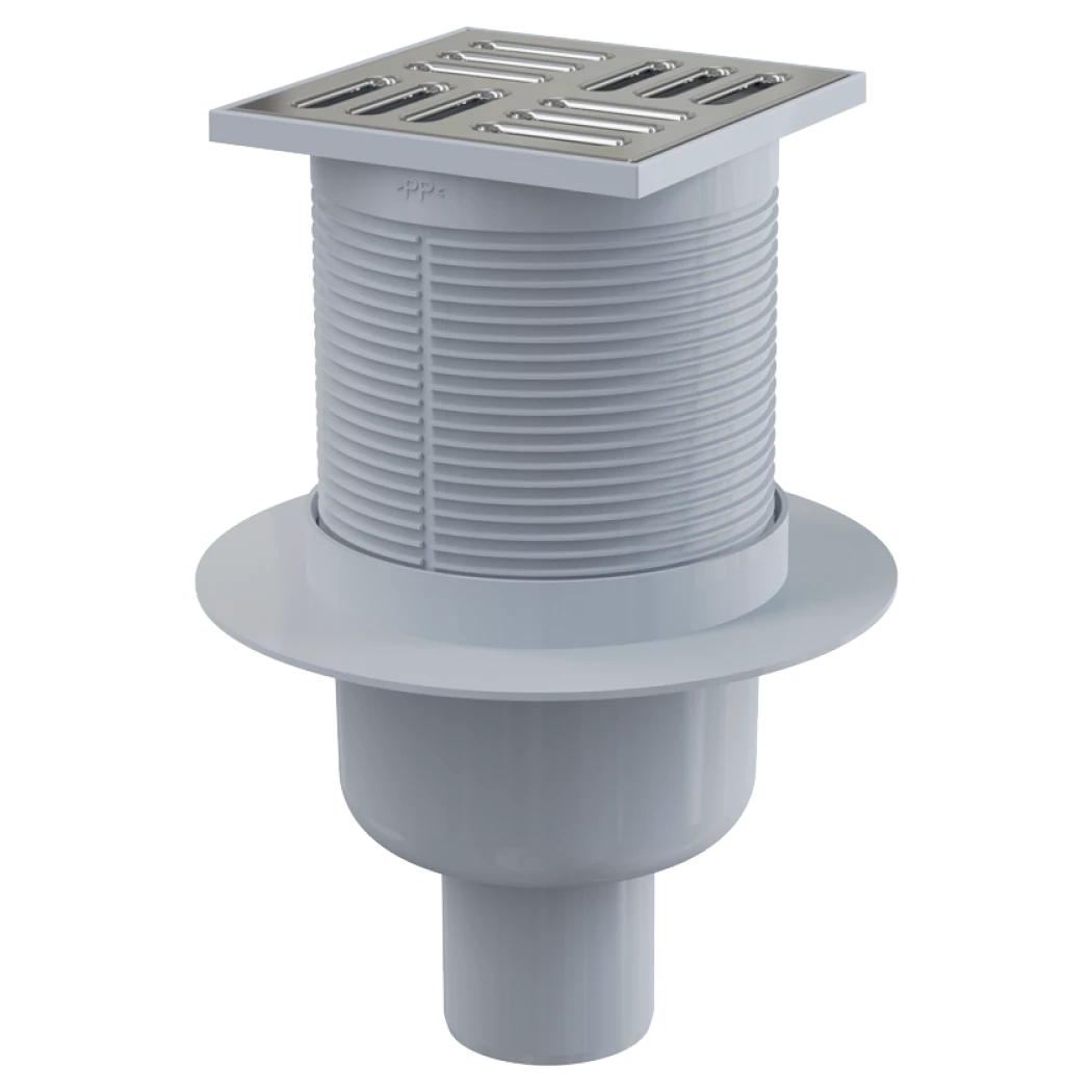 AlcaPlast Зливний трап (APV32) прямий стік, решітка з нержавіючої сталі, гідрозатвор комбінований SMART. 105 × 105/50 мм. Галузь застосування: • Для внутрішніх приміщень, де не очікується регулярне використання зливного трапа (пральні, котельні, підвали) • Для водовідведення на рівні підлоги • Для безбар'єрного доступу Характеристики: • Виробник: AlcaPlast • Країна виробник: Чехія • Гарантія: 25 років • Покриття (колір): нерж. сталь • Решітка з нержавіючої сталі 102 × 102 × 5 мм • Регульована по висоті горловина 9-95 мм • Ізоляційний комір для зручного монтажу гідроізоляції підлоги • Бокове підключення до каналізаційного стоку Ø50 мм • Вручну легко чиститься сифон, аж до стічної труби • Гидрозатвор - комбінований SMART • Водяний стовп і механічна заслінка ефективно перешкоджають проникненню неприємного запаху з каналізації • Сумісність з іншими складовими частинами зливного трапа, включно мокрого, сухого і комбінованого гідрозатвори SMART • Матеріал: поліпропілен, стійкий до механічних, хімічних і терм.