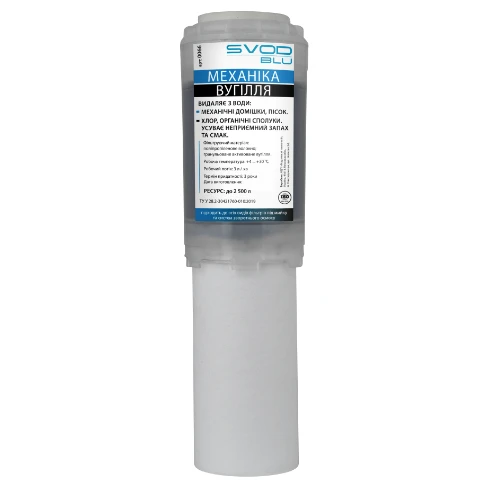 Затримує механічні домішки, знижує вміст хлору та органічних речовин. Покращує колір, запах та смак води. Підходить до всіх видів фільтрів під мийку та систем зворотного осмосу.