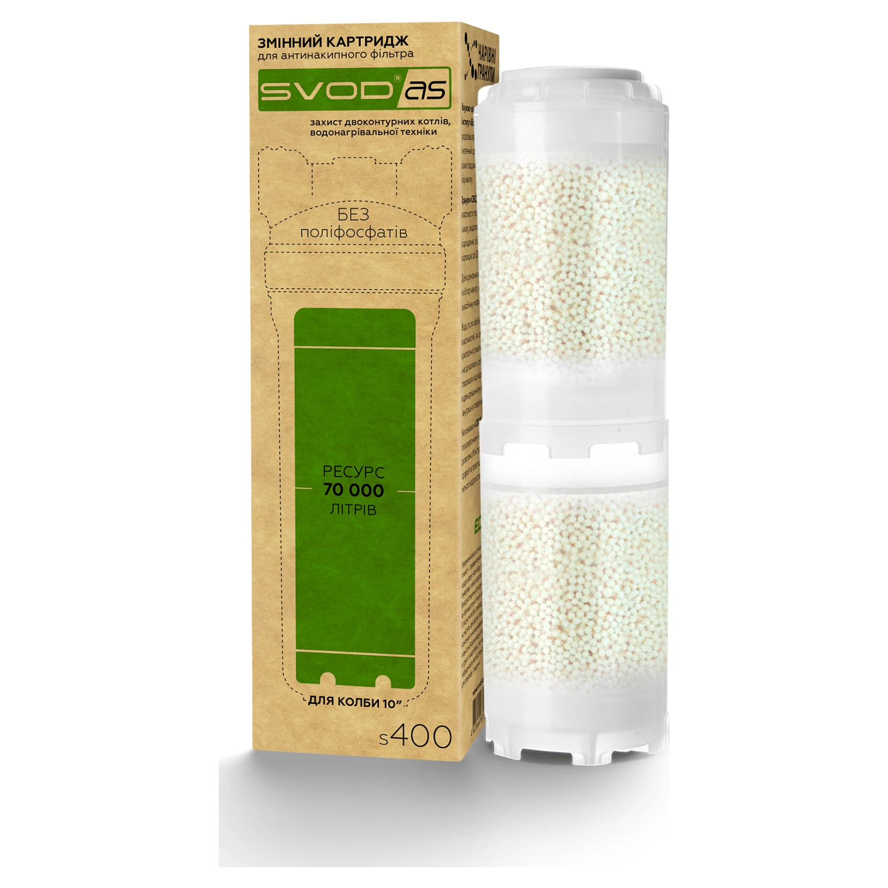 Змінний картридж для фільтра ST400 також можна встановити в будь-яку колбу 10". "SVOD-AS" — найкраще рішення для захисту Вашого двоконтурного котла від накипу. Він допоможе зберегти паспортні дані обладнання протягом усього строку його експлуатації (особливо актуальні витрати газу та електроенергії).