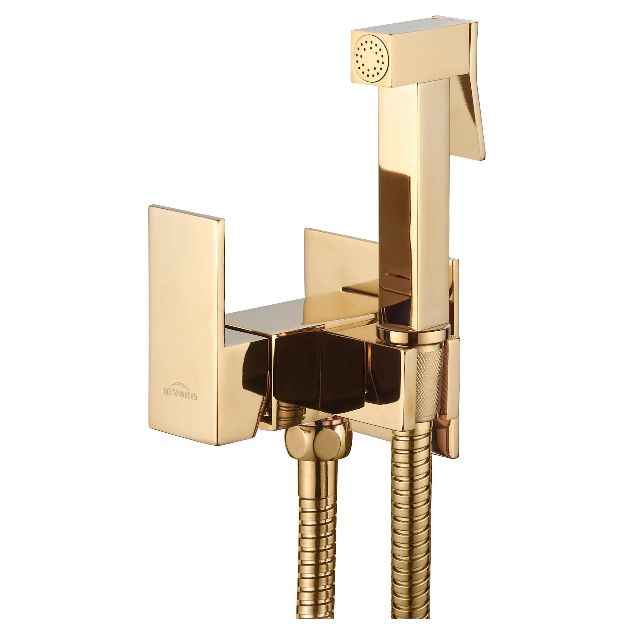 Змішувач для біде INVENA прихованого монтажу у елегантному золотому квадратному виконанні — це втілення розкоші, мінімалізму та високої функціональності. Він ідеально підходить для створення вишуканого та гігієнічного простору у вашій ванній кімнаті, приховуючи всі комунікації у стіні.