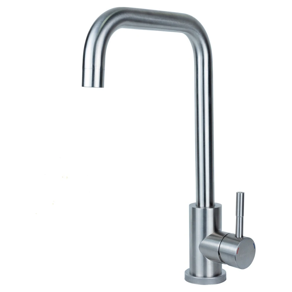Змішувач KT Ø35 для кухні Г-гусак на гайці SS Aquatica Мінімальний тиск в системі водопостачання: 0.5 бар Максимальний тиск в системі водопостачання: 10 бар Водневий показник води (pH): 6.5–8.5 Загальна мінералізація води: не більше 1500 г/м³ Тільки для чистої води без домішок, що містять абразиви (піску, глини, вапна тощо) Змішувач для кухні Акватика KT-4B170P виготовлений з нержавіючої сталі, вилив поворотний, Г-подібний. Тип управління - одноважільний. З його допомогою можна зручно помити не тільки столовий посуд, але і великогабаритний (великі каструлі, сковороди та ін.). Підходить для використання як в домашніх умовах, так і в пунктах громадського харчування. Переваги: зручність експлуатації; плавне регулювання подачі води; тривалий термін використання; захист від впливу зовнішніх факторів; проста установка. Щоб підключити одноважільний змішувач для кухні, скористайтеся гнучким підведенням (поставляється в комплекті). Догляд за виробом досить простий: для усунення вапняного нальоту і крапель води викорис