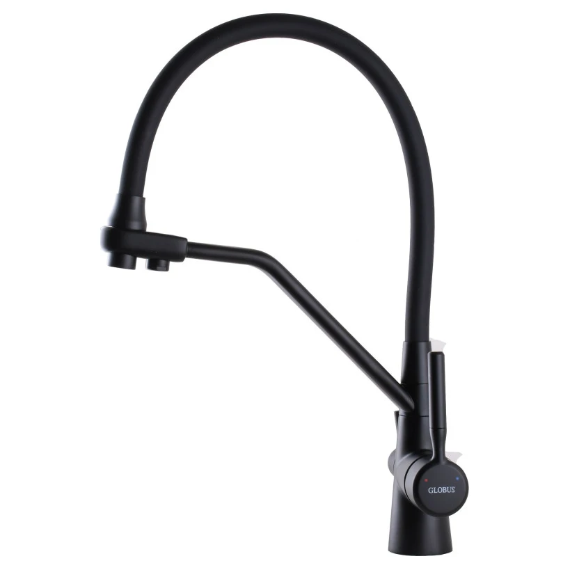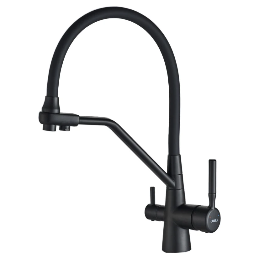 Globus Lux GLLR-0800-10-01 — це інноваційний та стильний кухонний змішувач, який ідеально поєднує в собі функціональність звичайного змішувача для водопровідної води та окремого крана для очищеної питної води з системи зворотного осмосу. Це ідеальне рішення для тих, хто цінує комфорт, естетику та прагне мати доступ до чистої питної води без зайвих елементів на мийці.