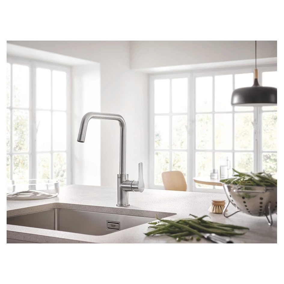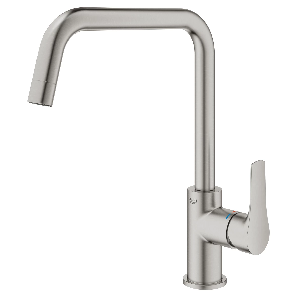 Змішувач для кухні GROHE Eurosmart New у виконанні "дамаська сталь" – це сучасний та елегантний змішувач, що поєднує в собі вишуканий дизайн, високу функціональність та надійність, властиву продукції GROHE. Оздоблення під "дамаську сталь" надає йому особливого, витонченого вигляду, який стане окрасою будь-якої сучасної кухні.