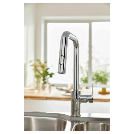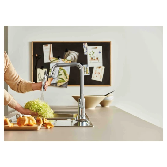 Оновлений змішувач для кухні GROHE Eurosmart New з висувним виливом поєднує в собі елегантний дизайн, високу функціональність та надійність німецького виробництва. Цей змішувач стане практичним та стильним доповненням до будь-якої сучасної кухні.