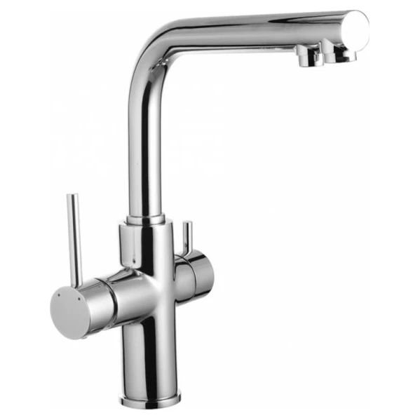 DAICY F змішувач для кухні однорич. з підкл IMPRESE (55009-F) Двоважільний змішувач для кухні з під'єднанням питної води. Має два канали — для водопровідної й фільтрованої води, вбудований злив для фільтрованої води, монтаж на один отвір. До комплекту цього змішувача додається спеціальне кріплення — велика гайка. Монтаж не вимагає додаткових інструментів, а висота кріплення дає змогу легко та швидко встановити змішувач на будь-яку мийку. Корпус змішувача Imprese виготовляється з латунного сплаву з умістом міді не менш ніж 59%. Характеристики: Вид монтажу: Урізний Керування: Двоважельний Тип виливу: Поворотний Габарити (ВхГ): 34.9 х 25 см Фільтрація води: Є (Без фільтру в комплекті) Комплект постачання: Спеціальне кріплення Шланги підведення води Колір: Хром Додаткові характеристики: Керамічний картридж Аератор Витрата води до 7 л/хв Підходить для проточних нагрівачів Матеріал: Латунь,Силумін Довжина виливу: 23.8 см