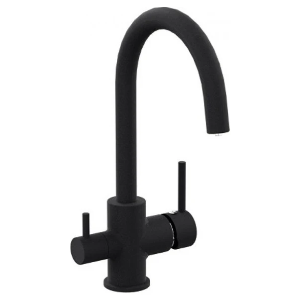 Imprese DAICY-U змішувач для кухні з підключенням питної води, (чорний) Змішувач для кухні IMPRESE DAICY-U з підключенням питної води (чорний), 55009-UB Особливості: змішувач для кухні; функція водопровідної та питної води; керамічна кран-букса для запору питної води; витрата води до 7 л/м; аератор від Neoperl, Німеччина; підходить для проточних нагрівачів; поверхня бежевий. Відмітні особливості змішувачі Imprese: Відчутно важкий латунний корпус: вміст міді не менше 59%. Зносостійке хромове покриття: латунний корпус нікелюється (шар нікелю 10мкм), потім хромується (товщина хрому 0,3 мкм). Продукція і після тривалої експлуатації зберігає свій блиск. Використання іспанських картриджів з керамічними дисками Sedal 40,35,25 мм гарантує тривалу і безперебійну роботу змішувачів (розрахований на 500 000 циклів вкл/викл). Аератори системи від відомого бренду Neoperl, Німеччина (постачальник аераторів для найбільших виробників змішувачів, таких як Hansgrohe, G&b).
