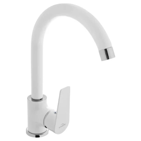 Змішувач для кухні Invena Dokos BZ-19-002 білий Основні характеристики: Виробник: Invena. Колір: Білий. Вид змішувача: Одноважільний. Гарантія: 60 місяців офіційної гарантії від виробника. Діаметр підключення шлангів: 3/8" Матеріал: Латунь. Підключення: До водопроводу. Країна реєстрації бренду: Польща. Шланги: На різьбі звичайні. Шланги підключення: Входять в комплект поставки.