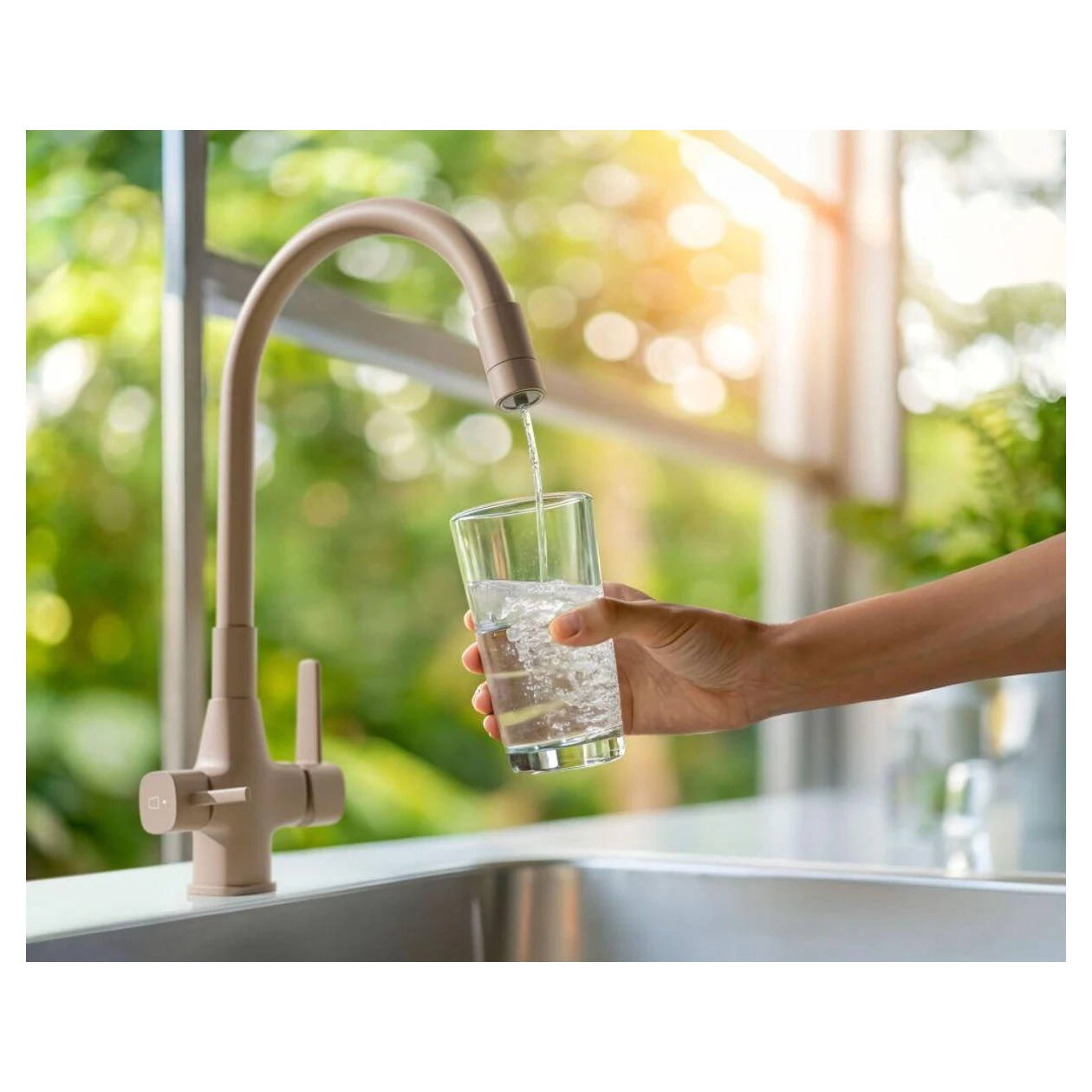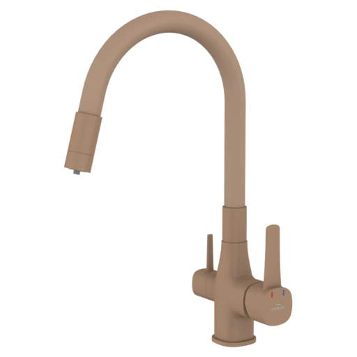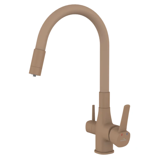 Змішувач для кухні в комплекті з фільтром для води. Таке рішення дозволяє назавжди позбутися зайвих пляшок чи глечиків, а вода, яку ми будемо пити з-під крана, буде цілком придатною для пиття. Вугільний фільтр, який використовується в наборі, видаляє сполуки хлору, покращує смак, запах і прозорість водопровідної води.