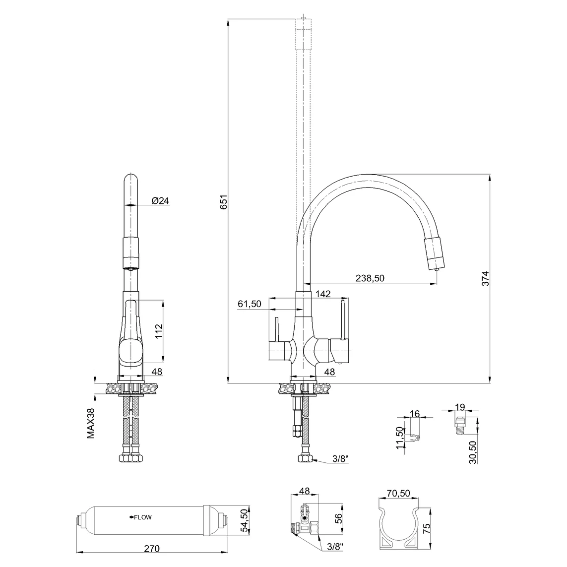 Змішувач для кухні в комплекті з фільтром для води. Таке рішення дозволяє назавжди позбутися зайвих пляшок чи глечиків, а вода, яку ми будемо пити з-під крана, буде цілком придатною для пиття. Вугільний фільтр, який використовується в наборі, видаляє сполуки хлору, покращує смак, запах і прозорість водопровідної води.