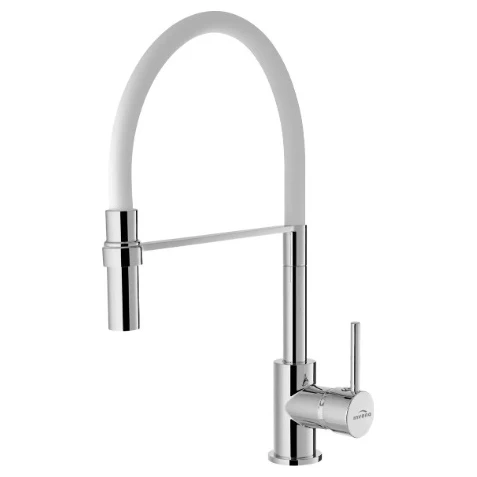 INVENA Змішувач для кухонної мийки KAMELEON білий BZ-29-L02 Змішувач для кухні Invena Kameleon BZ-29-L02 білий Основні характеристики: Виробник: Invena. Вид змішувача: Одноважільний. Гарантія: 60 місяців офіційної гарантії від виробника. Матеріал: Латунь. Підключення - до водопроводу, діаметр підключення шлангів 3/8" Країна реєстрації бренду: Польща. Тип виливу - з висувним виливом. Колір: Хром-білий, Білий Шланги на різьбі - звичайні. Шланги підключення - входять в комплект поставки.