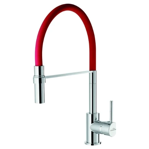 INVENA Змішувач для кухні KAMELEON червоний BZ-29-L07 Змішувач для кухні Invena Kameleon BZ-29-L07 червоний Основні характеристики: Виробник Invena Вид змішувача Одноважільний Гарантія 60 місяців офіційної гарантії від виробника. Діаметр підключення шлангів 3/8" Матеріал: Латунь Особливості: Висувна лійка Підключення: до водопроводу Країна реєстрації бренду: Польща Колір: Червоний, Хром Шланги на різьбі, звичайні. Шланги підключення Входять в комплект поставки.