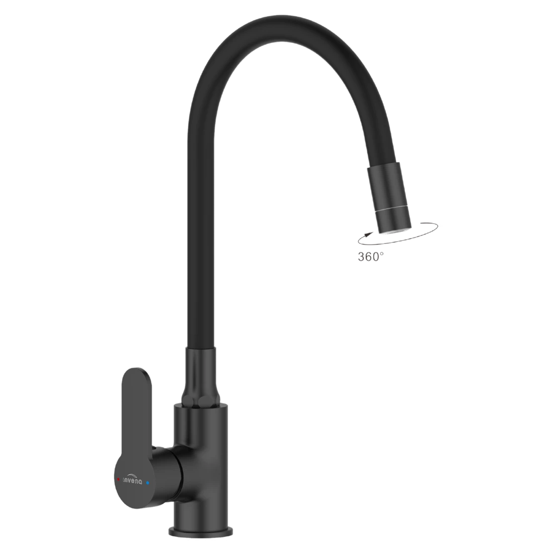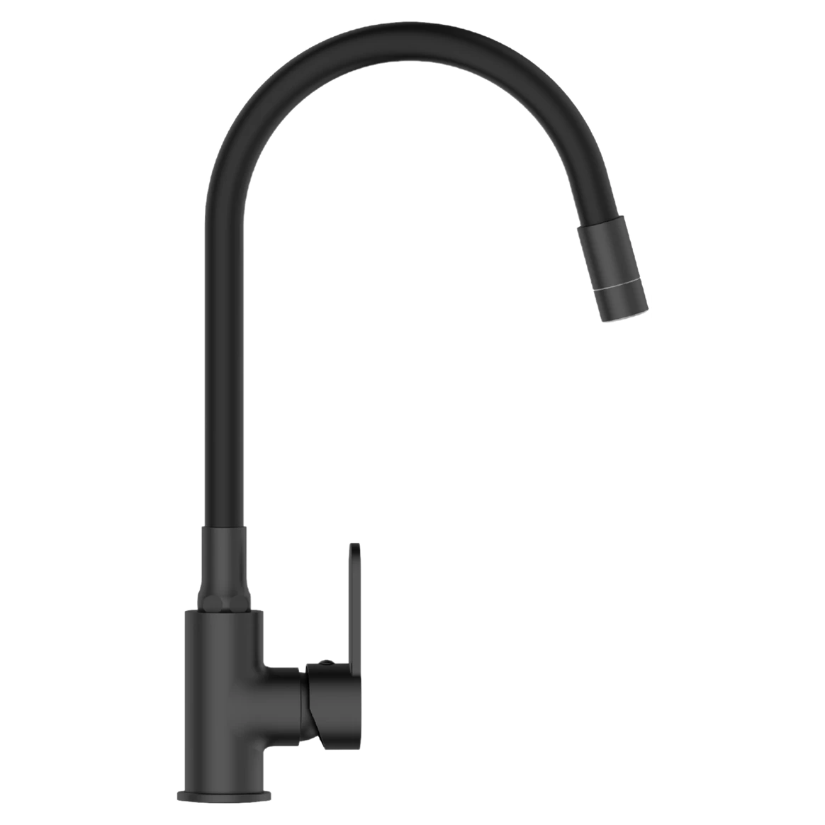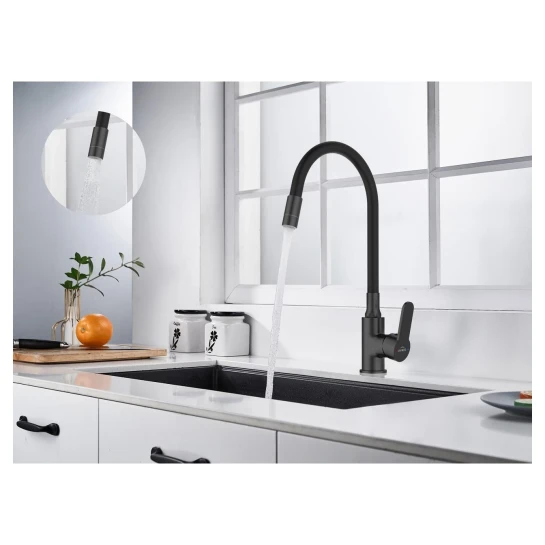 Наш інноваційний кухонний змішувач пропонує не тільки елегантний дизайн, але й функціональність, якої ви не знайдете в традиційних змішувачах. Завдяки двом типам струменя води наш змішувач забезпечує неперевершену гнучкість на кухні. Незалежно від того, чи потрібен вам м’який струмінь для ополіскування овочів чи сильніший для миття посуду, наш змішувач легко адаптується до ваших потреб. Більше того, функцію можна легко змінити за допомогою нашого інноваційного поворотного аератора, що робить його використання надзвичайно простим та інтуїтивно зрозумілим. Оснащений гнучким виливом, наш кухонний змішувач дозволяє вільно маневрувати та діставати до важкодоступних місць раковини, забезпечуючи найвищий рівень комфорту використання. Доступний у двох елегантних кольорах – насиченому чорному та стильному чорному/хромованому – наш кухонний змішувач не тільки ідеально вписується в дизайн будь-якої кухні, але й додає їй вишуканого характеру.