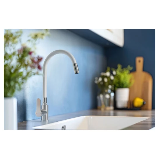 Цей мінімалістичний та стильний змішувач Ksanti Inox ідеально доповнить як світлі скандинавські інтер'єри, так і контрастні кухонні рішення. Поєднуючи елегантний дизайн із практичністю, він забезпечить комфорт та зручність у щоденному використанні завдяки своїй рухомій, гнучкій виливниці з двома режимами струменя.