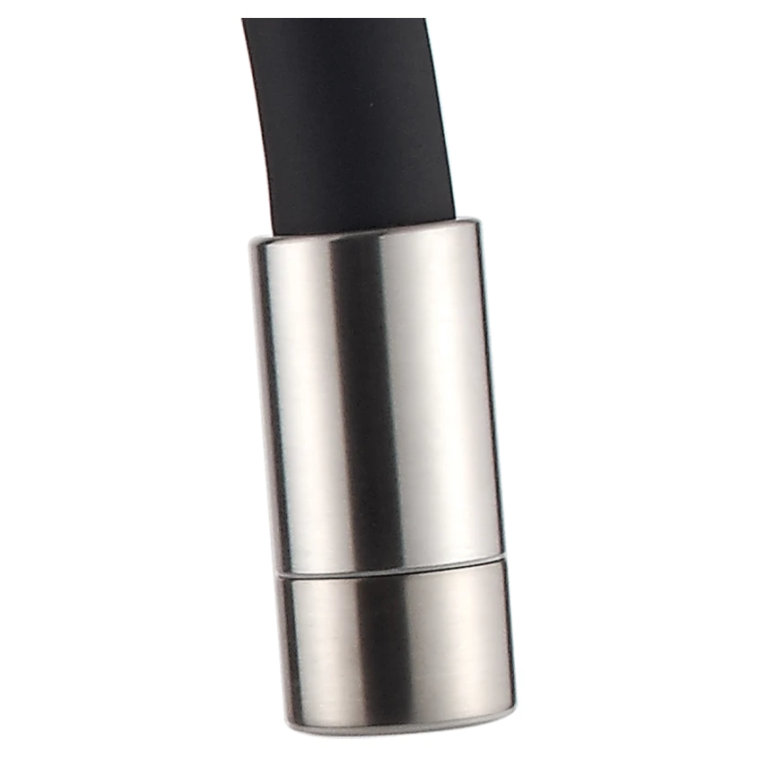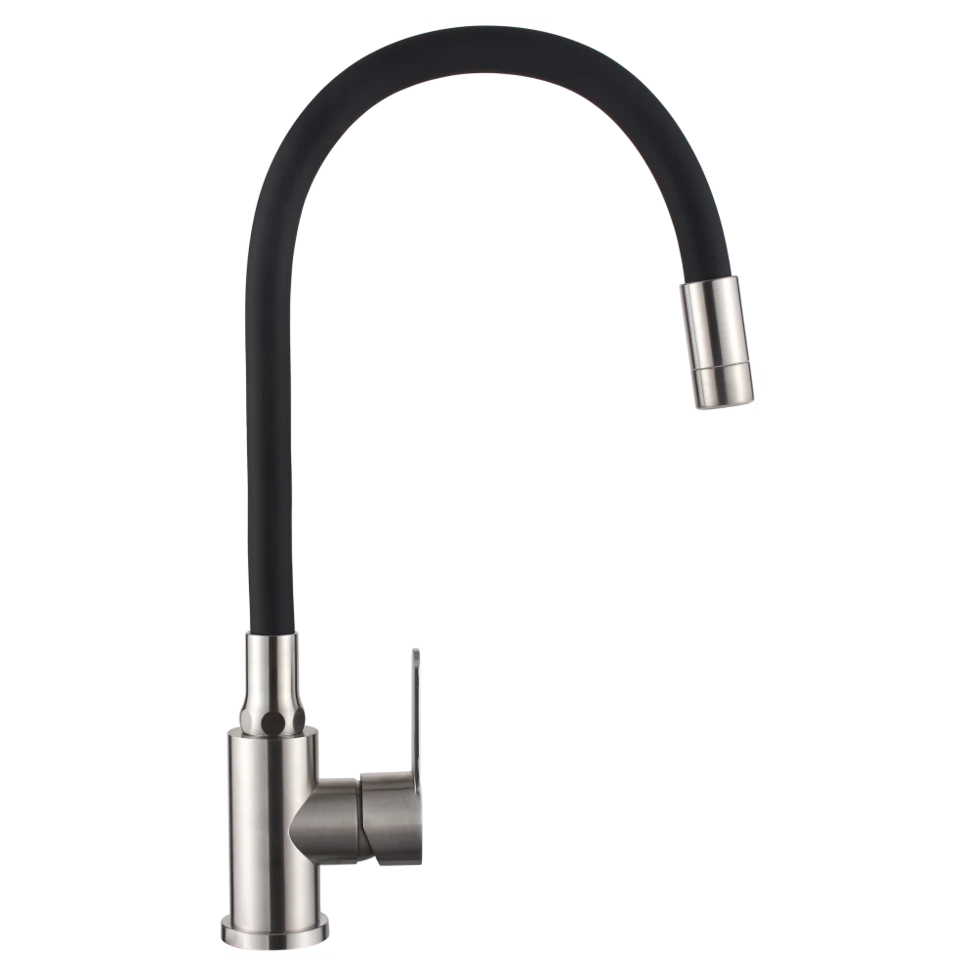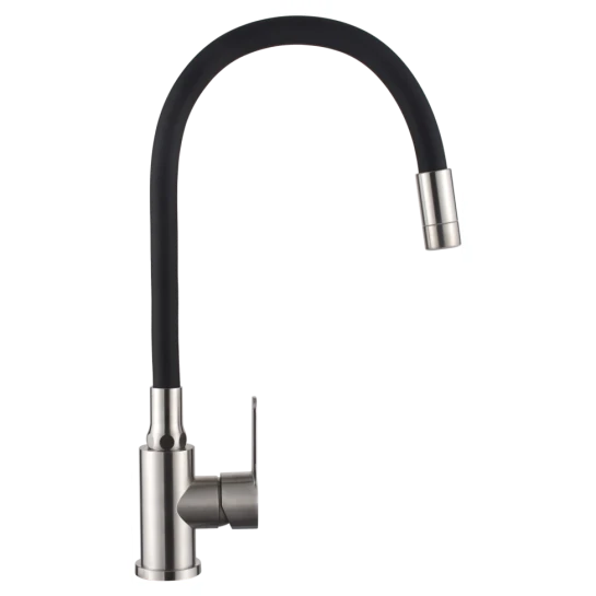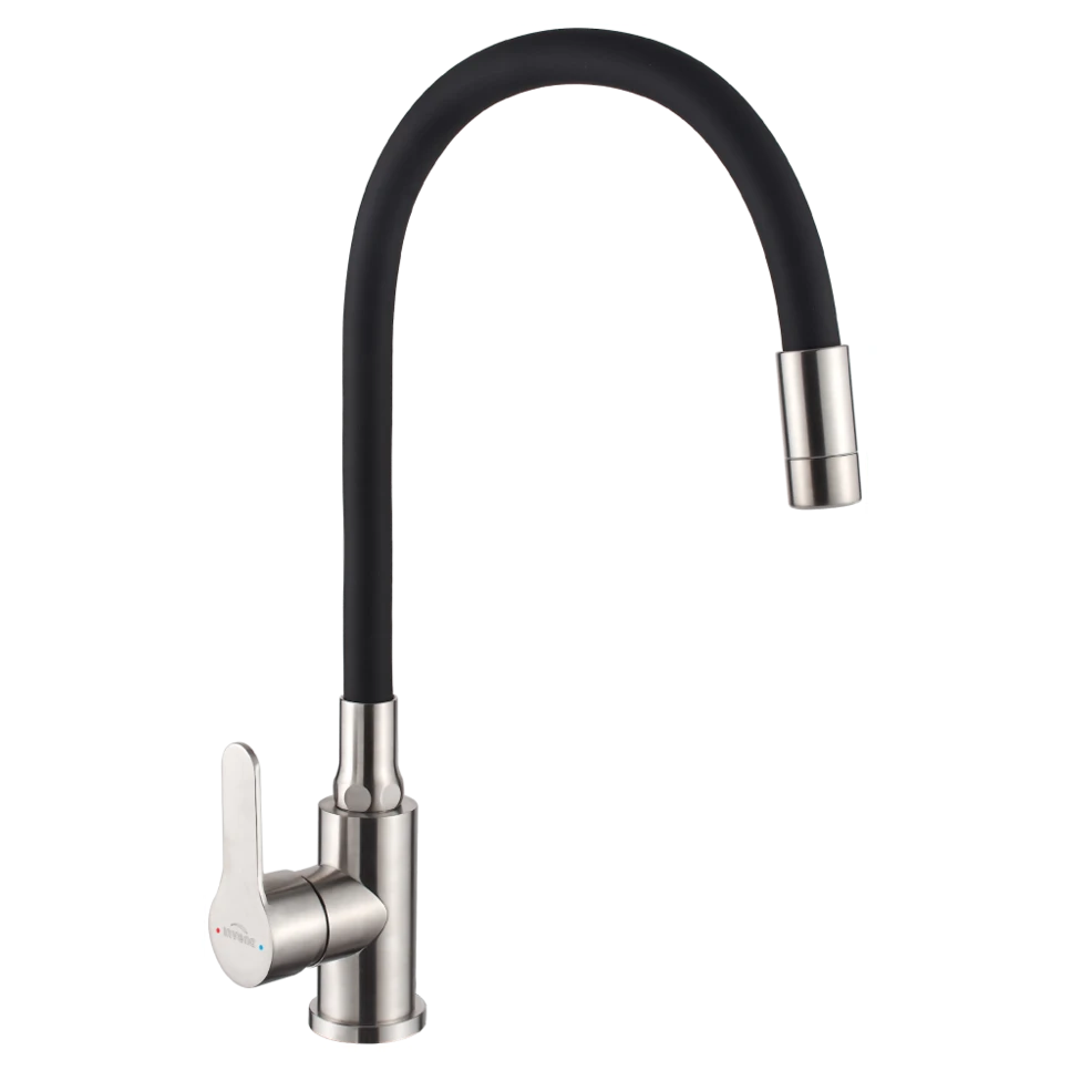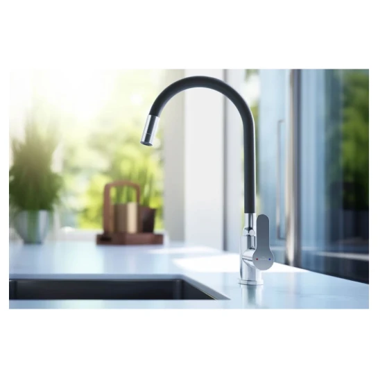 Виконаний у кольорі inox з чорними акцентами, цей змішувач вирізняється мінімалістичним, але дуже ефектним виглядом, який легко впишеться в різні стилі інтер'єру – від класичних до більш індустріальних. Завдяки своїй простій формі, кухонний змішувач Ksanti додає кухні витонченої елегантності, не перевантажуючи простір, і водночас привертає увагу.