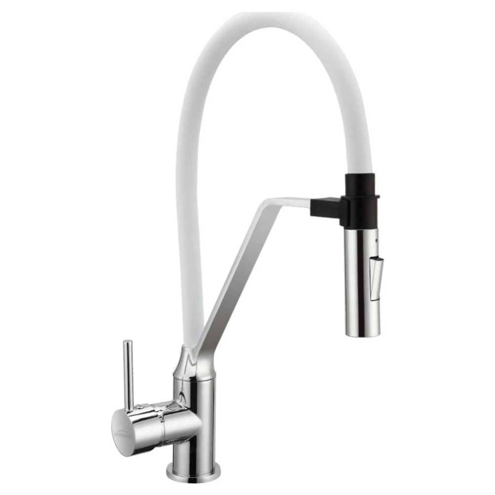 INVENA Змішувач для кухні кавовий Terra BZ-54-L02 Система швидкого складання, водозберігаючий аератор і два типи форсунок виливу (звичайний струмінь та спрей) задовольнить потреби найвибагливіших і найдосвідченіших кулінарів. Рухомий гнучкий вилив, який завдяки магнітному кріпленню легко повертається на місце. Характеристики: Виробник: Invena Призначення змішувача: Для кухонного миття Тип змішувача (крана): Одноважільний Монтаж: врізний. Кількість монтажних отворів: 1 Матеріал корпусу змішувача (крана): Латунь Тип підведення: Гнучкий Поворотний вилив: Так Вага: 2.1 кг Гарантійний термін: 60 міс Спосіб монтажу: Вертикальний Колір: білий