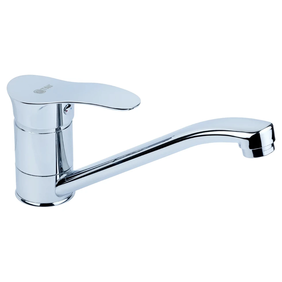 SE-1B245C Змішувач SE Ø40 для кухні гусак прямий 250мм на гайці TAU Змішувач для кухні TAU SE-1B245C одноважільного типу, з прямим довгим поворотним виливом. Картридж - керамічний з діаметром 40 мм, покриття - хромонікелеве. Модель підходить для мийок різних конфігурацій, оскільки виконана в класичному стилі. Переваги: зручне управління однією рукою; плавне регулювання потужності струменя і її температури; економія споживання води завдяки встановленому аератору; стійкість потускнению і до корозії; тривалий термін служби; швидкий монтаж і простий догляд. Для установки змішувача для кухні SE-1B245C застосовуються спеціальна кріпильна гайка і пара гнучких міцних шлангів для подачі води. Гарантія надається від виробника і становить 12 місяців