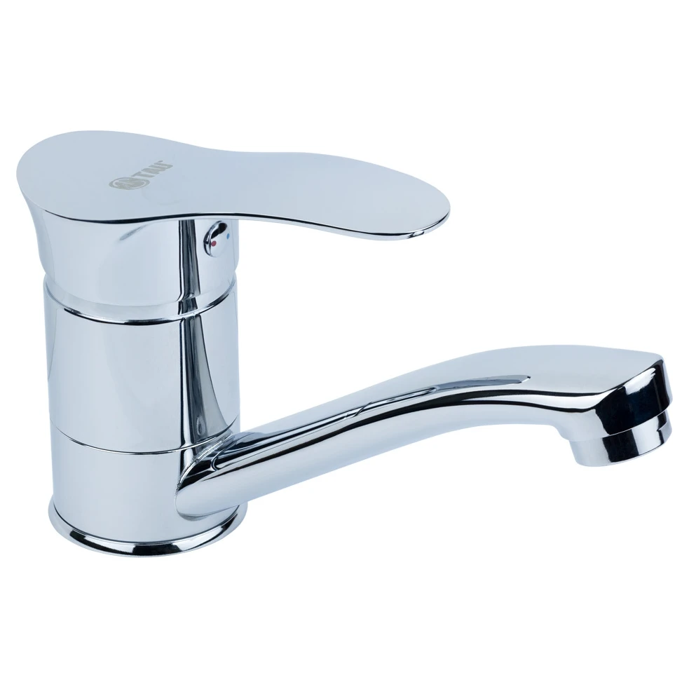 SE-2B145C Змішувач SE Ø40 для кухні гусак прямий 150мм на шпильці TAU Змішувач для кухні TAU SE-2B145C з прямим коротким поворотним виливом, тип управління -одноважільний. За регулювання натиску і температури води відповідає керамічний картридж. Покриття крана - хромонікелеве, що додає виробу сріблястий блиск і стійкість до корозії. Модель підходить для невеликих мийок. Відмінні риси: зручне і плавне управління; насичення струменя повітрям; тривалий термін експлуатації; швидка установка і просте обслуговування. Монтаж змішувача для кухні SE-2B245C можна виконати самостійно, використовуючи кріплення і гнучкі шланги, що поставляються в комплекті. Гарантія від виробника надається строком на 12 місяців