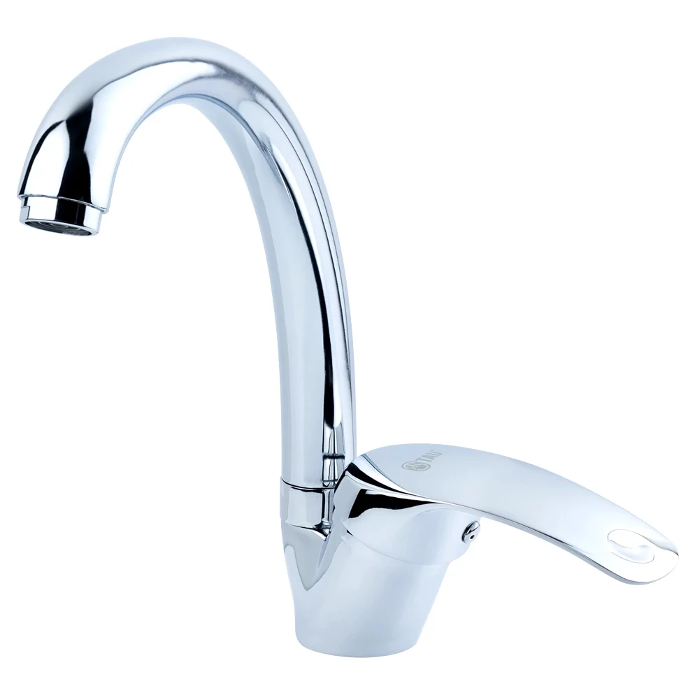 Змішувач SL Ø40 для кухні гусак вухо на гайці TAU (SL-4B143C) Змішувач для кухні TAU SL-4B143C виконаний з якісних матеріалів з хромонікелевим покриттям, яке надає дзеркальний блиск, захищає від корозії і невибагливе у догляді (досить протирати м'якою губкою або тканиною). Конструктивно - вилив J-подібної форми (висота 230 мм), важіль злегка зігнутий, з виїмкою під палець. Плавне регулювання натиску і температури струменя виконує керамічний картридж. За допомогою цього змішувача зручно мити як столову, так і варильну посуду. Підійде для мийок з однією або з двома чашами. Переваги: практичність; зручність експлуатації; проста установка; приємна ціна. Змішувач для кухні SL-4B143C монтується на поверхню врізним способом. Кріплення (гайка) і гнучкі шланги поставляються в комплекті. Гарантія надається на 1 рік