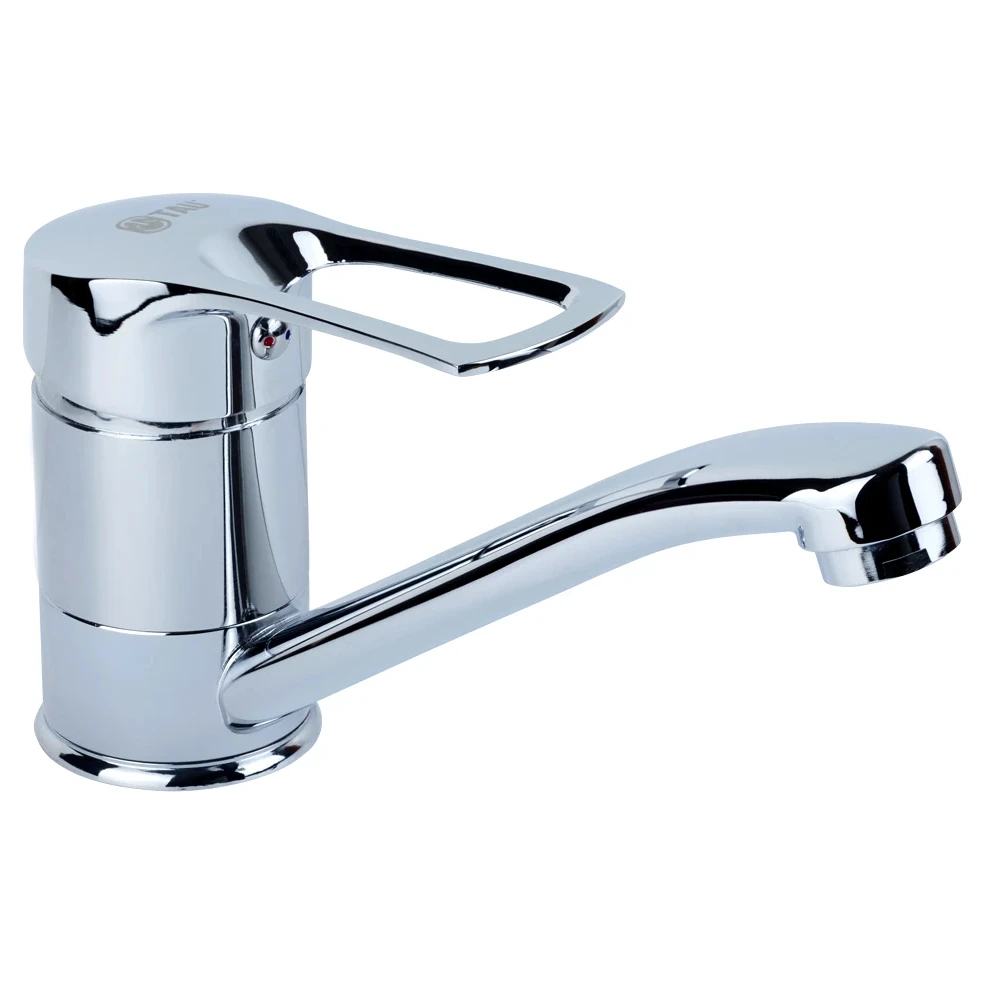 Змішувач SM Ø40 для кухні гусак прямий 150мм на шпильці TAU (SM-2B144C) Модель SM-2B144C - це змішувач для кухні TAU, який має прямий поворотний вилив довжиною 15 см. Виконаний з якісних матеріалів, з нанесеним методом гальваніки хромонікелевим покриттям, яке надає дзеркальний блиск і захищає від корозії. Для збереження товарного вигляду протягом довгих років кран досить протирати м'якою ганчіркою, не використовуючи порошкові і агресивні чистячі засоби. Важіль прямокутної форми, з наскрізним отвором. Усередині корпусу встановлено керамічний картридж, що забезпечує плавне регулювання натиску і температури струменя. Такий змішувач підійде для мийок з невеликими чашами. Переваги: стильний і лаконічний дизайн; компактний розмір; аерація і утримання дрібних вапняних відкладень; приваблива ціна. У комплекті передбачена кріпильна шпилька і гнучкі підводи. Змішувач встановлюється на виріб врізним способом. Гарантія - 12 місяців.