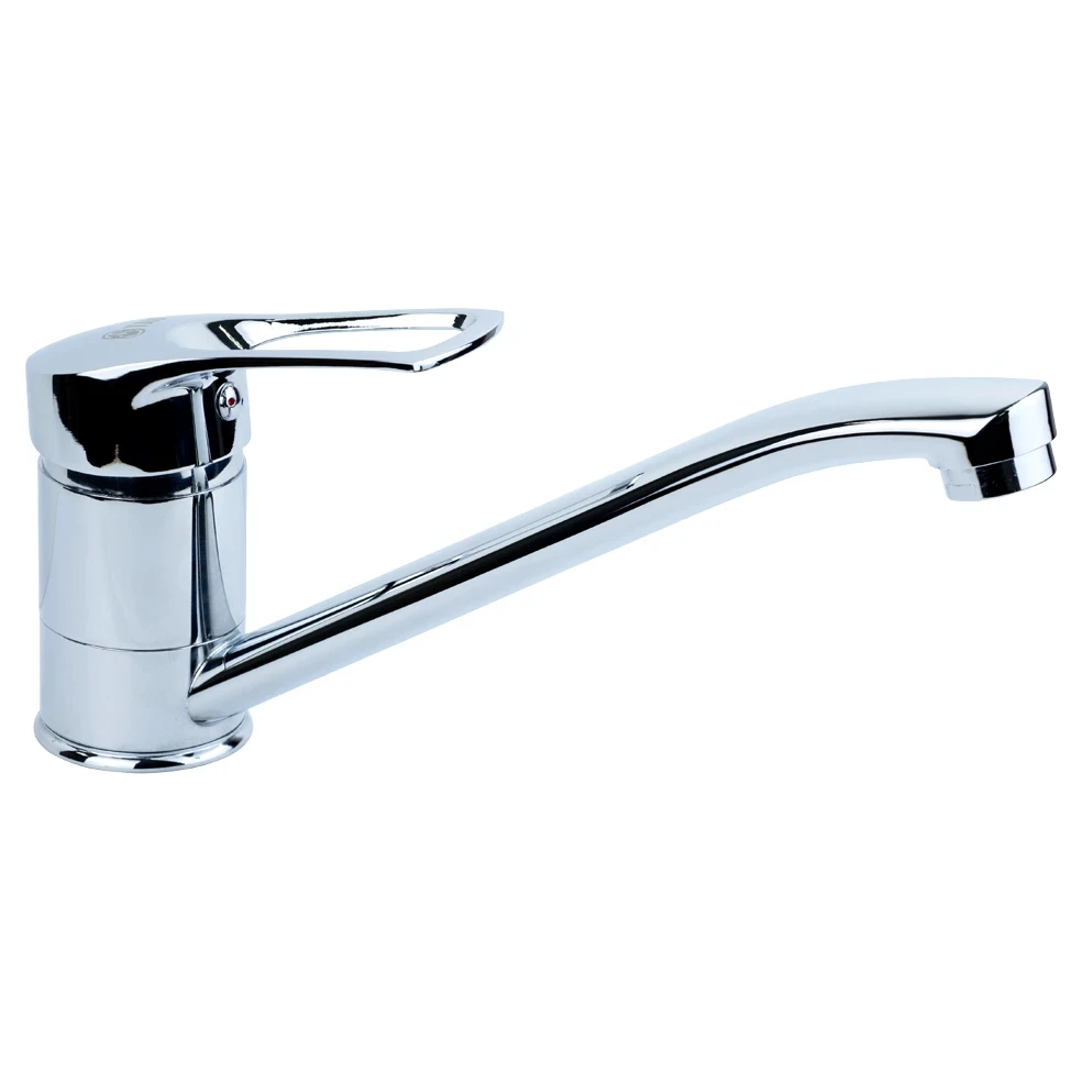 Змішувач SM Ø40 для кухні гусак прямий 250мм на шпильці TAU (SM-2B244C) Модель SM-2B244C - це змішувач для кухні з прямим поворотним виливом довжиною 25 см. Він є одноважільним, має обтічну форму і хромонікелеве покриття, яке надає дзеркальний блиск і захищає від корозії. Важіль прямокутний, з наскрізним отвором. Усередині корпусу встановлено керамічний картридж. Завдяки презентабельному дизайну і довгому гусаку кран підходить для мийок з великими чашами. Переваги: стильний і лаконічний дизайн; плавне регулювання об'єму і температури води; наявність аератора; швидкий монтаж. Для підтримки товарного вигляду протягом довгих років протирайте кран м'якою ганчіркою, не використовуючи агресивні миючі засоби. Змішувач встановлюється на виріб врізним способом. У комплекті є 2 гнучких підведення. Гарантія на кран - 12 місяців.