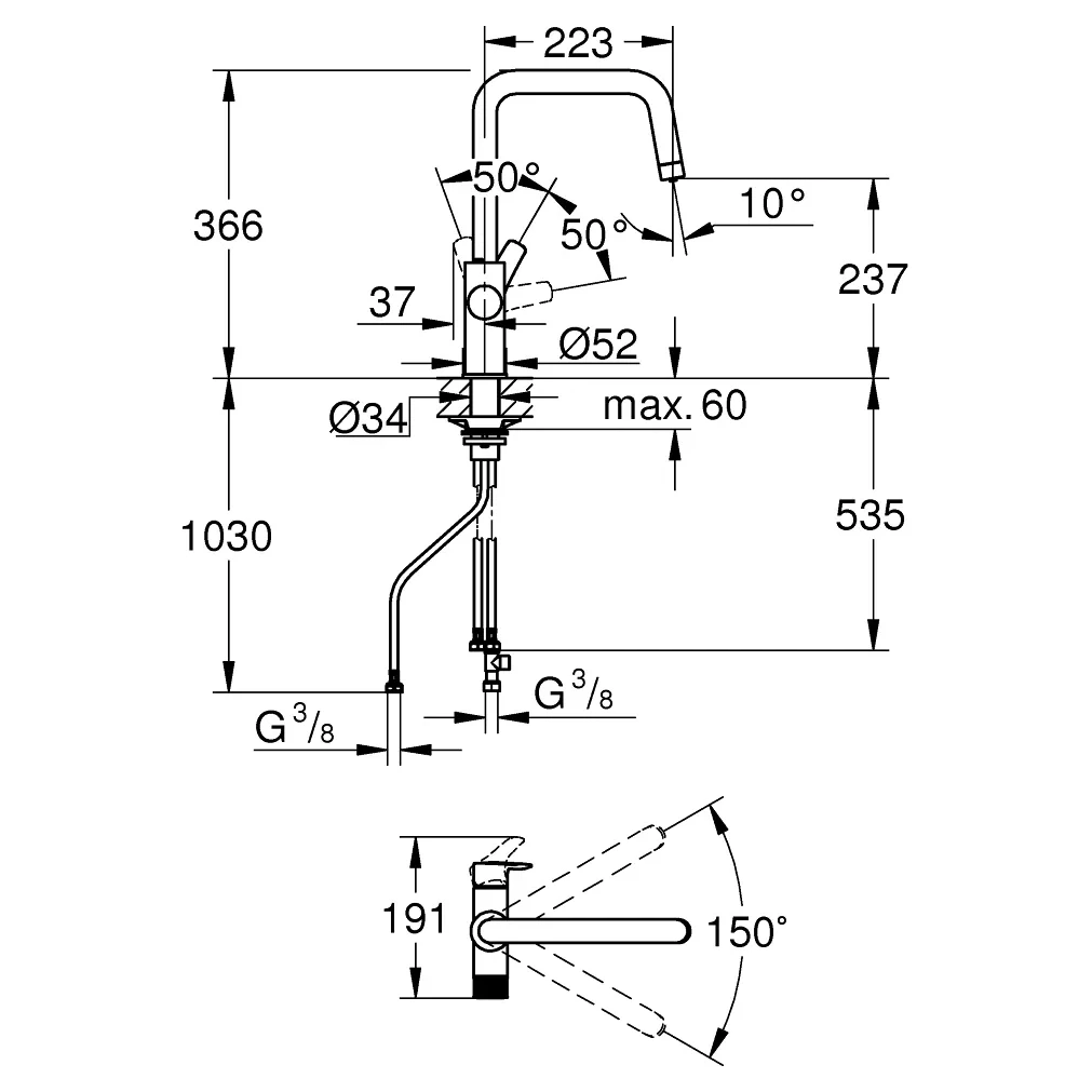 Змішувач для мийки GROHE Eurosmart комбінований Змішувач одноважільний для мийки Grohe Eurosmart, хром - відрізняється ефектним виглядом, функціональністю та простотою застосування.