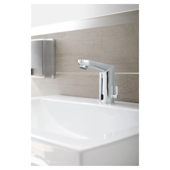 Сенсорний змішувач GROHE Eurosmart для раковини — це втілення сучасних технологій у ванній кімнаті, що забезпечує неперевершений рівень комфорту, гігієни та водозбереження. Ця модель з популярної лінійки Eurosmart поєднує в собі надійність, елегантний дизайн та функціональність безконтактного керування.