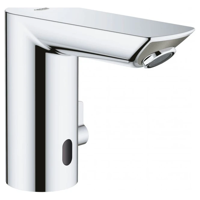Сенсорний змiшувач для раковини BauCosmopolitan Е GROHE (36451000) Представлена тут модель сенсорного врізного змішувача для раковини 36451000 серії Bau Cosmopolitan E від GROHE виготовлена з високоякісної латуні з хромованим покриттям і має стаціонарний вилив із виносом у 11 см. Змішувач встановлюється на один отвір зі гнучким шланговим з'єднанням під діаметр 1/2". Живлення від 6 В літієвої батарейки, тип CR-P2. Характеристики: З інфрачервоним датчиком для двостороннього зв'язку для моніторингу, настройки та сервісного обслуговування 6V літієва батарейка, тип CR-P2 Термін служби батарейки: прибл. 7 років (150 включень в день) GROHE StarLight хромована поверхня GROHE EcoJoy 5,7 л / хв гнучка підводка Зворотній клапан Грязеулавлівающіе фільтри З вбудованим електромагнітним клапаном Зовнішня батарея Система швидкого монтажу Багатоступінчастий покажчик стану батарейки 7 попередньо встановлених режимів: автоматичний змив, термічна дезінфекція, миючий режим, додаткові функції і точні налаштування за