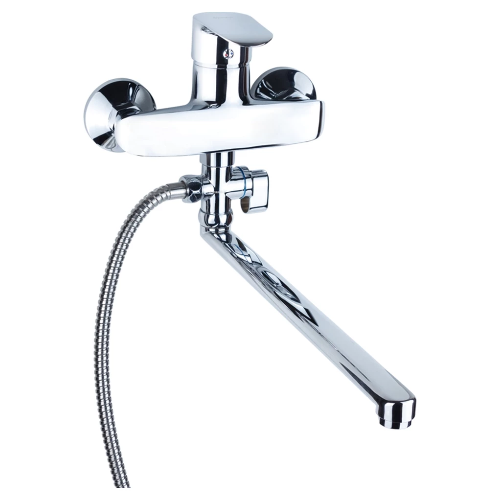 Змішувач KN Ø40 для ванни AQUATICA (KN-3C228C) Мінімальний тиск в системі водопостачання: 0.5 бар Максимальний тиск в системі водопостачання: 10 бар Водневий показник води (pH): 6.5–8.5 Загальна мінералізація води: не більше 1500 г/м³ Тільки для чистої води без домішок, що містять абразиви (піску, глини, вапна тощо) Змішувач для ванни Акватика (модель KN-3C228C) змішувача типу з картриджних дивертором. Має лаконічний, але привабливий дизайн, регулювання води здійснюється однією рукою. Покриття корпусу хромонікелевим антикорозійне, картридж керамічний. Підведення до магістралі здійснюється за допомогою ексцентриків, які закриваються декоративними відбивачами з нержавіючої сталі. Особливості моделі: поворотний виливши довжиною 350 мм; вбудований рассекатель потоку води; простий догляд; легкий монтаж.
