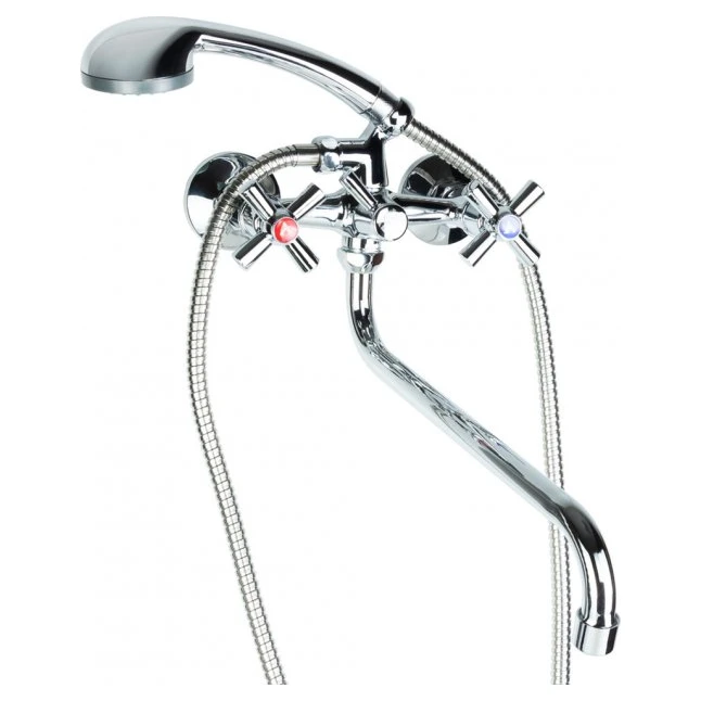 Змішувач PM 1/2" для ванни гусак вигнутий дивертор вбудований кульовий AQUATICA (PM-5C457C). Якщо ви шукаєте недорогий, але якісний змішувач для ванни з душем, зверніть увагу на модель PM-5C457C. Його привабливий дизайн з вентилями хрестоподібної форми і кольоровими заглушками подарує затишок будь-якому приміщенню. До того ж, цей змішувач для ванної з довгим виливом, що дозволяє не тільки прийняти душ, але і помити руки або предмети побуту. 4 причини, чому варто купити змішувач для ванни Aquatica: зручне використання; легкий відхід; простий монтаж; доступна ціна. Виріб поставляється в комплекті з душовою лійкою, шлангом з нержавіючої сталі, кронштейном і кріпильними елементами. У коробці ви знайдете інструкцію та гарантійний талон.
