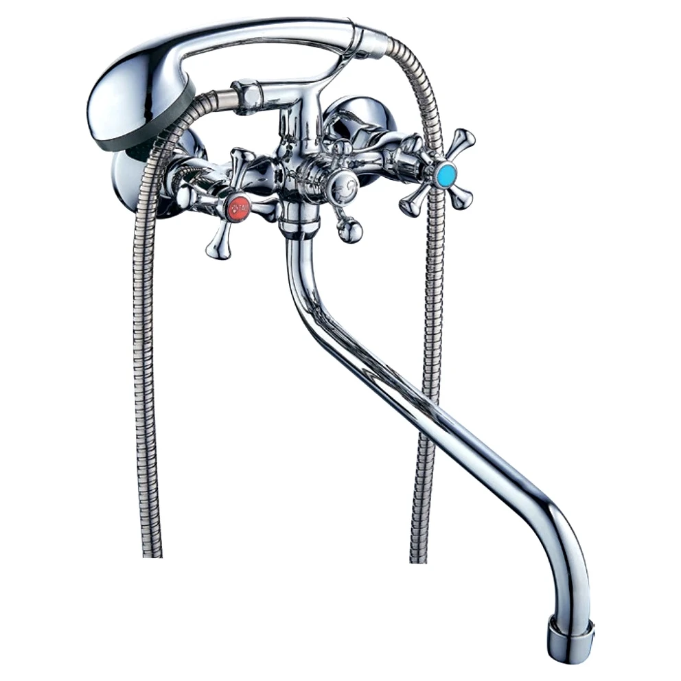 Смеситель VN 1/2" для ванны гусак изогнутый дивертор встроенный шаровый TAU (VN-5C460C) Смеситель для ванны TAU VN-5C460C является двухвентильным, имеет встроенный шаровый дивертор. Модель классическая, вентили холодной и горячей воды обозначены заглушками соответствующих цветов, дивертор – шаровой. Излив изогнутый, с вращением на 360 градусов. Носик оборудован сеточкой-аэратором, благодаря которой в ванну не попадает мелкий мусор, а струя воды распределяется равномерно. Данный смеситель для ванной с душем, поэтому в комплекте поставляется шланг из нержавеющей стали (1,5 метра), лейка для душа и оцинкованный кронштейн. Преимущества: хромоникелевое покрытие; кран-букса из латуни с керамическими дисками; интуитивно понятное управление; простота обслуживания. Способ крепления смесителя для ванны – настенный, тип подвода – эксцентрики. Гарантия – 12 месяцев.
