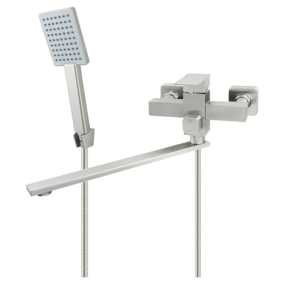 Змішувач для ванни VENTA з плоским виливом. Змішувач одноважільний з керамічним картриджем 35 мм. Всі змішувачі VENTA - це вироби, повністю виготовлено з нержавіючої сталі, тому продукція після тривалої служби зберігає свій блиск. В основу виготовлення змішувача була закладена простота форм в поєднанні зі зручним і стильним дизайном, тому дана модель відмінно підійде для будь-якого інтер'єру і впишеться в будь-яку колірну гамму. Вся сантехніка має сертифікати якості та санітарно-гігієнічні висновки.