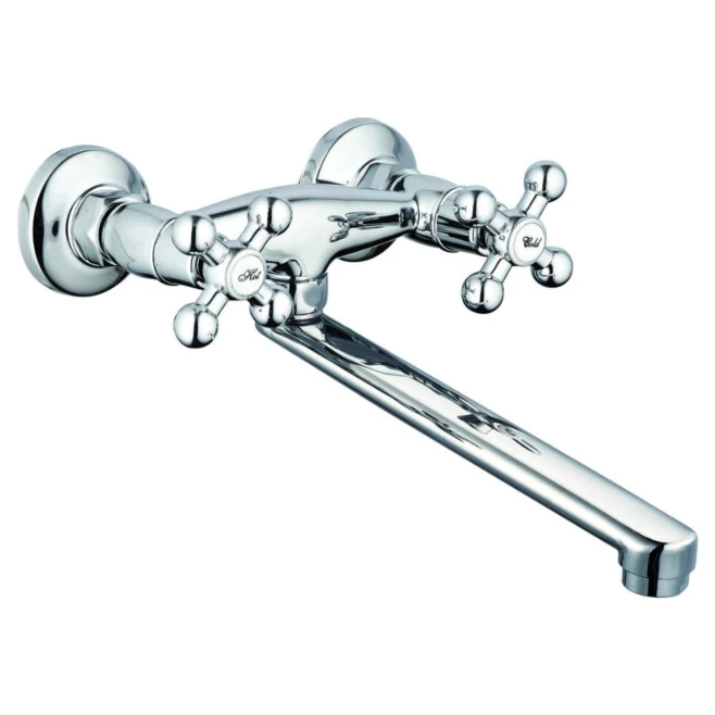 Змішувач HI-NON KMB-605 настінний для кухні Характеристики: Вид монтажу -Настінний Вид змішувача -Двохвентильний Можливе застосування :Для кухні Колір - хром Матеріал- силумін Гарантія-12 місяців.