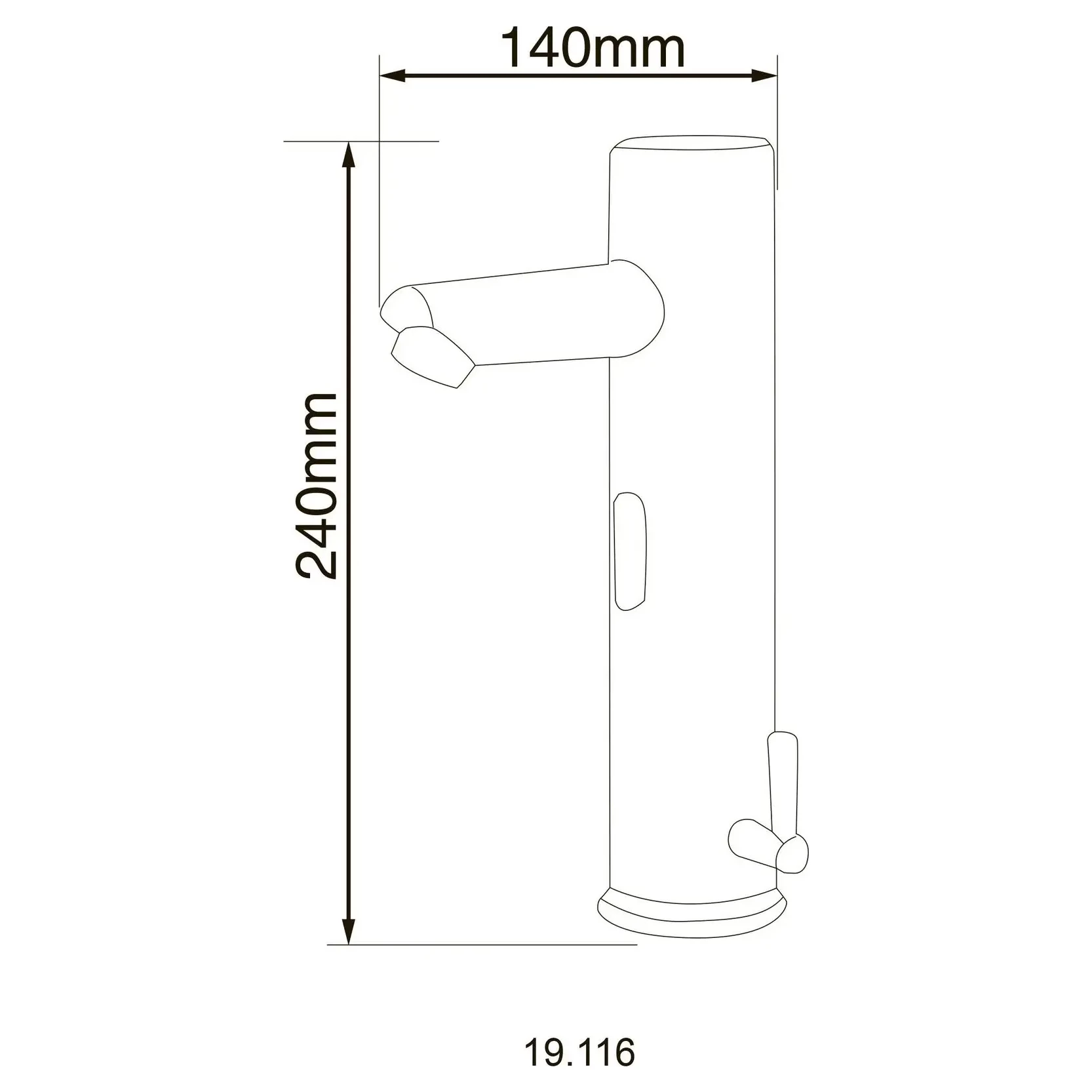 Змішувач сенсорний для умивальника Hotec Hot/Cold - простота встановлення, використання та обслуговування. Литий корпус. Виготовлений із латуні. Покриття змішувача - якісне хромове напилення. Установка на умивальник за допомогою шпильки. Сенсор – для включення води. Для регулювання гарячої та холодної води використовується бічний важіль.