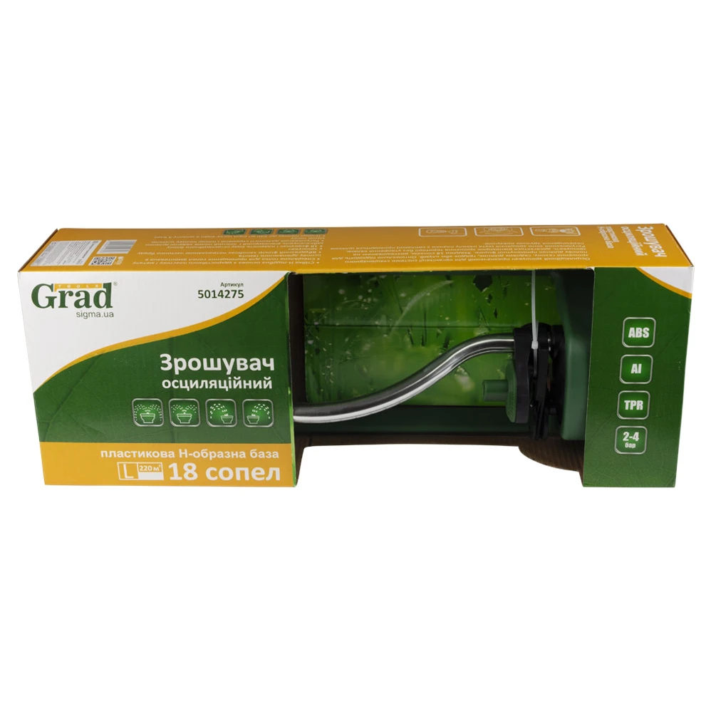 Зрошувач осциляційний 18 отворів пластикова Н-подібна база (ABS) GRAD (5014275) призначений для організації системи стаціанарного зрошення газону, садових ділянок, грядок або клумб. Оптимально підходить для поливу ділянок прямокутної форми. Завдяки 18 соплам, розташованим на зрошувачі, досягається рівномірне зрошення теріторії без утворення калюж.
